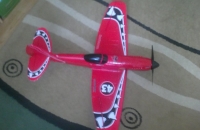 Toto lietadlo som dostal k narodkam .Stavba prebiehala celkom hladko.Dal som cerveno strieborny nastrek.Vcera prebehol zalet za uplneho bezvetria.Lietadlo sa vzpinalo ako divoky kon a padalo zo strany na stranu.reverzy boli v poriadku.Asi po 30sec mi na minimalke padlo na zem,skody mimimalne.tazisko bolo tiez OK.Podla mna to bolo sposobene velkima vychylkama 70% kridelka a90% vyskovka.