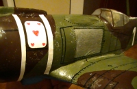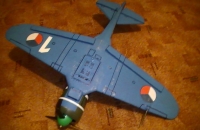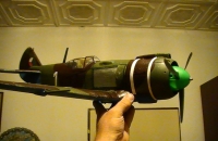Tk jsem si splnil další sen, Lavočku...Výřezy co delá pan Jurík z Přerova, jsou z EPP řezány klasicky odp.pilou-křídla, vop a sop.Trup je řezán jako plochá šablona v kusu v rozvinutém tvaru.(geniálně jednoduché).Vnitřní přepážky rovněž EPP, jen motorová kruhová je překližka 1 mm. Kbina vakuovaná na kopytě, motorový kryt je petka 2 litry spodek...(sedí i maketově.)Kužel vrtule je z dětského vajíčka z dinoparku v němž je nějaký dinosaurus. Lvočka je jeden z mnoha uvažovaných modelů p.Juríka jež hodlá řezat na souboje kombatů s pentlemi. Jelikož se mi sestavený model nelíbil jako bílý bitevní polotovar nastříkaný halabala lihovkami s chlupatým povrchem, probudila se ve mě opět kitařská minulost a jal jsem se ji zdokonalit. Doplnil jsem detaily, jako přechody křídel vepředu a vzadu do trupu, tak i lapač vzduchu na motoru, kryty zbraní před kebinou a výfukové klapky na bocích trupu. Potom jsem vše požehlil matnou folií a nabarvil štětcem fasádními akrylátkami i s povrchovou patinou a plátováním.