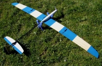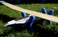 Trochu jsem při stavbě nedával pozor, obě serva pro ocas jsem dal pod křídlo a tudíž nemůžu už hlouběji zasunout baterku. To má za výsledek, že jsem trochu honil těžiště a nakonec skončil s 15g závaží na ocase. Trochu z něho budu ještě ubírat. Taky asi zesílím VOP destičkou z překližky, motor mám jen na třípolohový přepínač a při plném plynu se celý ocas dost chvěje od vrtulového proudu. Vydává to dost drnčivý zvuk a nerad bych si ocasky uklepal za letu. Podle varia stoupá kolem 10 m/s, výš než 150m jsem si zatím netroufnul.