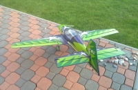 Koupeno v kamenném obchodě Kostka modelcentrum v Jihlavě za cenu tuším 3800. Letadlo je jedno z mála kuličkových co celkem drží směr při akrobacii. Originál pohon s vrtulí APC dodává výkon pro nekonečné vertikální stoupání. Originál 3-listá vrtule a obrovský sice vypadá hezky, ale nemá to takový výkon. Letový čas s vrtulí APC 14/7 je zhruba 10minut tvrdší akrobacie, potom do baterek nabíjím kolem 2000mAh proudem 5A.