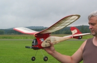 Klasická stavba modelu z roku 1943 v mierke 1:1. Použité pôvodné materiály a postupy. Poťah hodváb - trup, krídlo Vlies. Riadené V, S, M.