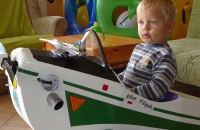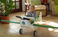 Šlapací to není, ale dá se vyrobit jakákoliv karikatura šlapacího letadla.Toto je na rychlo "spíchnuto" bez plánů, jen s myšlenkou a dostupným materiálem na zatěžkávací zkoušku malého dítěte. Později dostane polofunkční letadlo.