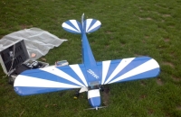 Trup uz je cely spevneny ,hlavne drziak motora -predna cast ,priestor kabiny a spodna cast v mieste podvozku . Samozrejme treba vediet ako to spevnit .Par modelov som uz postaval od zakladov tak ze nerobi mi problem model spevnit na potrebnych miestach . Jednu vec co ma prekvapila a moze to narobit problem neskusenemu modelarovi je ustavenie vyskovky . Otvor pre vyskovku ma neskutocnu volu a neni jedno ako sa vyskovka vlepi do trupu .Treba to namerat , presne ustavit a vole vymedzit balzou . Uhol nabehu som dal na 1,5stupna co je ideal .Ak sa toto nespravi tak uhol nabehu by bol min. 5 stupnov a model by neletel. Ten povodny podvozok som vyhodil hned ako prve po rozbaleni krabice -vyrobca to tam pribaluje na pobavenie zakaznika :-) Nahradil som ho beznym podvozkom naohybanym z oceloveho drotu