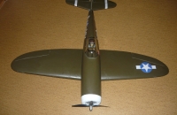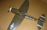 Tak jsem původního Razorbacka věnoval kamarádovi Pepovi co začal také s létáním a postavil jsem nového.Experimentoval jsem trochu s rozpětím a oproti původnímu jsem jej zvětšil o 10 cm,musím říct že je to dost znát na klouzavosti a ovladatelnosti modelu létá o něco lépe než předešlý.Původně jsem osadil model motorem MP-Jet s převodovkou ale při záletu se porouchal a spravit už nepůjde tak jsem tam dal osvědčený e-max GT2215/ 09 se kterým jsem zatí problém neměl.Model je postaven z xps Austrotherm ovládané funkce jsou K,V,M kabina je vyrobena z Petlahve od cocacoly a obtisky vytisknuty na tiskárně a přilakovány bezbarvým lakem.Letoun je v Markingu pilota Francise (Gabby) Gabreski 61.stíhací perutě 56.stíhací skupiny 8.letecké armády se základnou Halesworth v Anglii.Pilot Francis Gabreski sestřelil za 2.sv.války 28 nepřátelských letadel,doporučuji přečíst knihu kterou napsal Gabby život stíhače.