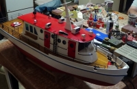 Tuto loď kdysi postavil kamarád pan modelář Jindra Soukup z Brna.Typuji,že asi tak 30 let se v ní vozily myši v kumbále,občas ji používaly jako doplněk stravy.Byla objevena náhodou při úklidových pracech a ujal se jí kamarád Ivan,který z ožraného a dokrouceného vraku na vyhození během několika měsíců vytvořil takovou krasavici.Bylo nutno znovu oplaňkovat palubu,sletovat nová zábradlí,dolepit a zakytovat ohlodaný domek,rozhýbat hřídel šroubu,udělat nový vrátek kotvy,okna a další drobné doplňky.Samozřejmě se celá loď kytovala a lakovala.Vzhledem k tomu,že na internetě nebylo moc informací,Ivan zjistil jen,že snad byla inspekční,dala se do těchto barev a také proto,že barevná kombinace vypadá dobře.