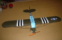 K vánocům jsem si pořídil kabel učitel žák ke svému vysílači a přemýšlel co postavit aby se s tím dalo učit létat začátečníky,bylo jasné že to musí být větroň nebo pomalý hornoplošník,okopíroval jsem tedy třípohledovku z knížky nechal zvětšit na formát A0,trochu to poupravil,a z materiálu arbiton 4mm sestavil tento cvičný model.Piper se nechá řídit buď jen křidélky a výškovkou nebo jen směrovkou a výškovkou a nebo obojím což se uplatní při pokročilém létání.Je to pomalý model s jednoduchou konstrukcí kterou zvládne i začátečník z levného a dostupného materiálu,jako předlohu jsem zvolil stroj který létal při vylodění v normandii,v létě 1944.