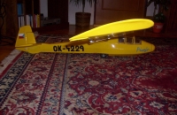 Stavbu jsem začal zvětšením plánku z modeláře-a to byla první chyba,protože jsem si nevšiml,že chybí jeden list plánku,kde byly některé přepážky,atd.Tehdy jsem neměl ani internet,takže jsem chybějící díly musel vypočítat a nakreslit,což nebylo moc přesné.Řeknu to asi tak-o elektronice jsem nevědel nic,jaká serva,co je přijímač,atd. vůbec celý model je postaven způsobem co nejlevnějším,např. serva v křídlech jsou použity z rozbitého křídla,které jsem našel na poli,pokudtohle čte nějaký začátečník jako já,doporučuji to po mě neopakovat:-)