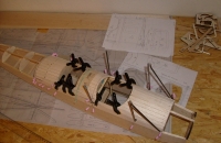 Druhý model podle plánku modelář,tentokrát oproti Pionýru mám již komplet plánek a některé díly vyřezané laserem,čas jsem sice neušetřil,ale práci určitě,hlavně u žeber v křídlech.S přestávkami to stavím už 4. rokem,a pořád to není hotové,ale jak se blíží konec stavby,hodně se bojím záletu,mám před sebou nejdůležitejší fázi a to jaký zvolit pohon,sám jsem přiznivec pro takový typ modelu spíš spalovací,mám i připravený 6,5 Modela,ale vzhledem k tomu,že všichni modeláři v okolí létají elektro,a já sám se spalovákama mám mizerné zkušenosti,nevím,co zvolit,na jiném modelu,který ještě ani nebyl ve vzduchu,mám 12ccm žhavík a už jsem se s tím tak natrápil,že uvažuji o konverzi na elektro.Nechám si poradit od Vás zkušenějších.