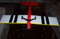 Tak jsem se konečně dostal v neděli k zalétnutí letadla.Zálet proběhl v pohodě ,byla potřeba poupravit trošku směrovka nějak se zasekl pantík.