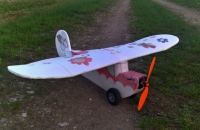 Původní verze: Konstrukce dle návodů z internetu a mírně modifikované křídlo, aby se vešlo do metru kvůli převozu. Celé z EPP 8mm + 10mm křídla + balza na žebrech a smrk na vyztužení křídel. Křídla uchyceny čtyřmi polyamidovými šrouby.