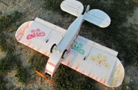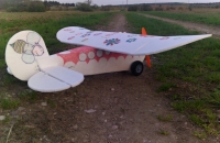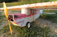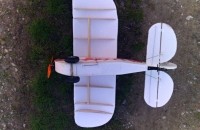 Co se mi nikdy nevyhovovalo byla absence křidélek a tak jsem se rozhodl postavit nové křídlo. Je to 8mm EPP ohnutý přes smrkový nosník. Uši se mi zaboha nepovedlo inteligentně zvednout, abych dosáhl symetrie a tak jsem to vzdal a udělal je rovné. Rozměrově 1150x330mm. I nadále je sundavatelé křídlo na čtyřech nylonových šroubech. Předělána výškovka na jedno servo. Prodloužen čumák o cca 5cm a nově jde baterka vkládat vrchem přes čumák. Zásadně se změnil letový projev k lepšímu a to díky vyvážení. Bobmovnice zůstala volná pro padáčky ;) Lehčí kolečka 80mm bez odpružení. Dcera nastříkala nový design, ale pan včelka zůstal.