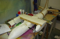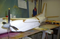 Povrchová úprava - jemně přebroušeno, šlehaným tmelem vytmelené póry a středním Modelsplanem potaženo. Barvy Eternal a Polyuretan lak. Náběžné a odtokové hrany a exponovaná místa zesíleno hnědou páskou a zředěný herkules nebo jiné bílé lepidlo.