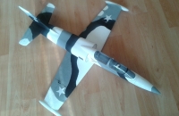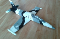 Dlouho jsem plánoval postavit L-39, hned jak LM-Model začal vyrábět stavebnici s hustším EPP slavného Albatrose neváhal a objednal. Stavba z výřezů jde docela rychle, ale provedl jsem změny proti základu od výrobce hlavně úpravu křidélek, které jsem předělal dle reálné předlohy a jsou velice účinné. Materiál má sice téměř nezničitelné vlastnosti, ale při opracování třeba nádrží jeto téměř nemožné, tak jsem je nahradil sendvičově balsou s depronem a doplnil led osvětlením. Při výběru edf pohonu jsem zvolil oblíbené dmychadlo Vasafan 65 právě tahle velikost je naprostý maximum co do modelu vejde. Motor jsem zvolil osvědčenou Megu 16/15/2 kterou napájím lipol 3S 2200mAh 35C. Tahle kombinace není vůbec špatná, statický tah pohonu je 766g na 44A zátěže. Před finální podobou jsem provedl zálet a hned jsem zjistil, že provedu pár úprav nejen posunutí těžiště z 65 na 69mm od náběžné hrany, ale zásadní změnou byl uhel náběhu, který je v základu od výrobce cca 2 stupně, tedy pro model jako Jet podle mě né moc vhodná kombinace a model hodně brzdí, tak jsem to pořešil zapuštěním křídla na odtokovce více do trupu a snížil na jeden stupeň... výsledek se projevil na dynamice letu k lepšímu.