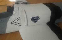 Povrchovou úpravu jsem zvolil atraktivní vzhled akrobatické skupiny Black Diamond a přesně tak model do podoby nastříkal. Albík létá pohodově a svižně :) také se udrží ve vzduchu na čtvrt plynu, mám vyzkoušený i přistání bez motoru při větší hmotnosti 734g jde rychle dolu no, jinak jsem s letovým projevem spokojený.