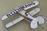 ...je to vlastne zase moj dalsi experiment,ci sa da postavit velmi lahky priest.trup,pretoze som chcel tuto nadhernu polomaketu-vyvoj sa vydaril./asi 120hod/....jeho letovy prejav je famozny-od stabilneho pomaleho letu v kruhoch,kedy odidem od vysielacky pokecat si s kolegami,po sialene a sam.neprirodzene obraty az po vysenie na vrtuly,kde ho vdaka krat.mak.trupu treba sus.riadit...je to proste lietadlo na vyblbnutie na velmi malom priestore