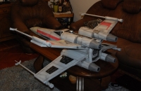 Na x-winga jsem našel nákres s řezy,ale nějak se mi nezdály proporce, tak jsem je upravil podle svého nejlepšího vědomí a svědomí. Následoval klasický postup… šablony z hliníhového plechu, řezačka na polystyren, smrkové laťky a kulatiny, purex a tmel LA. Letoun je stavěn z extrudovaného polystyrenu a 5 mm Starlonu a vše tmeleno tmelem na sádrokartony . Model je natřen Alkydovou základovkou, která povrch ještě zpevní a je dobře brousitelná. Zbytek barev je kombinace Balakrylu a tónovaček. Paneláž je vyznačena lihovou fixou a odstínováno airbrushem barvami Tamiya.