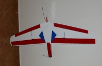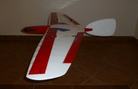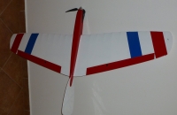 Tento model jsem si postavil už před delší dobou, ale než jsem byl spokojen trvalo to nějaký měsíc a tak až nyní, kdy jsem prověřil samokřídlo více než dvaceti spokojenými starty a přistáními uvádím ho sem. Letadlo je sestaveno z výřezů od lasermodely.cz. Křidlo má nábežnou hranu z uhlíkové kulatiny, která je velmi pevná a pružná což činí obtíže při stavbě a chce to trpelivost (kulatina se od žeber má tendenci odtrhávat…) nakonec jsem, ale vyhrál a v nejvíce prohnutých místech pojistil vlepením trojúhelníčků mezi žebra a kulatinu. Trup jsem nakonec udělal se silnější balzy tl. 3mm a prostornější, tak aby se vešla oběžka o průměru 28mm do trupu a baterie 3 článek 1300mAh je tam jen tak tak. Směrovka je také nově konstrukční a vyztužena uhlíkovými pásky. Celý model je potáhnut solarfilmem. Celkovou hmotnost modelu jsem oproti originálu dosti nezvládl a vyhoupl jsem se na dvojnásobek, ikdyž zase s mnohem výkonějším motorem a větší baterií.