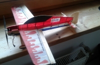 Osadená nie je a či ju budem osádzať je otázne, chcem ešte urobiť kombináciu depron- mylar, a balza-litespan. Konkrétne táto je potiahnutá japan papierom 12g na m2, kde som prvý krát skúšal poťah papierom.