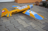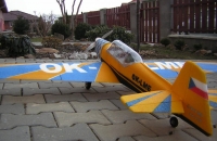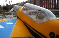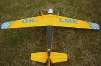 ..taky ho mám, je fajn na blbnutí, udělal jsem na něm krytku na baterku mezi kabinou a motorem z vrchu trupu a křídla přilepil natvrdo, do auta se vejde, takže v poho, trošku předehnout kola dopředu, při startu dotáhnout výkoškovku nadoraz a postupně jak zrychluje tak výškovku povolovat, pozor na odskoky, při pomalejší reakci na výškovce, po odskoku při plně dotažené výškovce, může lehce dojít k přetažení letounu a to tak nízko nad zemí může být nebezpečné...chce to trochu cviku, ale nic na tom není....