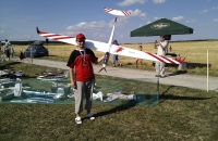 Súhlasím s letovými vlastnosťami. Nutný je mix krídelká- smerovka (ja mám 100%) , predok trupu som zvnútra dobré prelaminovať- slabé miesto a časom by praskol. Mám ten istý motor a regulátor , baterku som ale dal 4S 4.000mAh- nemusím dovažovať. a vrtuľu 13/6 (mal som 12/6 ale motor mal ešte veľkú rezervu ) Klapky som odrezal a otočil a pri pristáti sa vyklopia na 80% a perfektne brzdia pri pristátí ( mal som pred touto úpravou problém pristáť kôli klzavosti nad zemou.) Vo vzduchu pôsobí majestátne a nízke a rýchle prelety bez motora nemajú chybu. nech ti to lieta...............