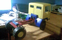 Z nudy se rodí fakt býkoviny v hlavě a je dobré když z toho vznikne něco jako tohle . Pracoval jsem na tom bezmála rok a pul - metoda pokus omyl. Dneska jsem o to zakop tak jsem to nafotil ještě to není zajeté ale pak dám i video. V zadu je diferenciál a motor je ve předu jak u skutečného MANA. Přední náprava je volná takže se muže naklánět. jojo nuda je nuda .