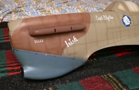 Musím se přiznat, že brzdící štíty prozatím nepoužívám a to z toho důvodu, že to s nima zatím moc neumím. Doposud jsem vždy přistával prostě s plynem na volnoběh, pořádně vytratit rychlost a dosednut. Toto však se Spitem nelze. Pokud to tak provedu ukončí Spit svou dráhu pěkným kotrmelcem. On prostě potřebuje při přistání pořádně ofukovat výškovku, jinak neudrží ocas na zemi. A to je to co mi nejde - při přistání přidat trochu plyn, aby proud vzduchu ofukoval pořádně výškovu. Proto prozatím přistávám na rychlosti. Je to sice dlouhé přistání, ale zatím účinné. Pokud vytáhnu brzdící štíty, model pouze zmenší razantně svou rychlost a to je vše. Žádný jiný vedlejší efekt se neukáže. Pak dosedne na zem, ale ..... jak jsem psal výše. No musím se ještě hodně učit .