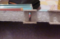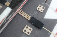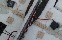 Přemýšlel jsem o tom, jak zkonstruovat křídlo, původně uvažoval o uhlíku, ale nakonec jsem tam dal setový dřevěný nosník a přeřízl ho v půli. Pouzdro je udělané z překližky 1mm, uprostřed jsou dvě malé kostičky z 5mm balzy. Křídla drží proti krutu "konektory" opět z 1mm balzy, vše je odlehčené vrtáním. Křídla jsou zajištěna sucháčem.