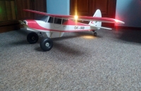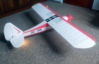 FunCuba jsem si pořídil po zvládnutí Bety 1400, jako motorovou variantu modelu k elektro-větroni Solius. Chtěl jsem, aby se alespoň částečně podobal Piperu PA-18, které často létají v úpravě „bush“ na Aljašce. Letadlo je vybaveno LED osvětlením se zábleskovými světly, hlídáním napětí akumulátoru a teploty ESC. Původní model od Multiplexu jsem doplnil odnímatelnými vzpěrami křídel z uhlíkové pásnice a lepším ostruhovým kolečkem z HK. Upevnění původního ostruhového kolečka mělo nedostatečnou tuhost a stále se ohýbalo. Jeho varianta z HK je oproti tomu naprosto bezproblémová. Pro spojení vodičů mezi křídly a trupem jsem použil levné, ale spolehlivé konektory typu PSH se zámkem. Pro každé křídlo je použit jiný počet pinů a tím je zajištěna jejich nezáměnnost. Podle svých velkých vzorů je model vybaven přídavným nákladním podvěsem, který jsem vyrobil z Climaporu. Váží cca 13g a plánuji ho využívat pro uložení kamerky, FPV sady, nebo jiných nákladů. Teoreticky by se z něj dal vyrobit podvěs pro bombardování bonbóny a podobně. Pro uchycení samotné kamerky Mobius je nad náběžnou hranou křídel v blízkosti „střešních oken“ zabudovaný magnet, podobně jako je to na videu v odkazu níž. Pro natáčení krajiny tak, aby nebyla vidět otáčející-se vrtule je na plastu pro upevnění podvozku ještě jeden typ držáku kamery. Je to upravená část samolepícího držáku, kde využívám jen kulový čep se stativovým závitem a jeho pouzdro. Poloha kamerky je tak snadno nastavitelná a zároveň je držák (obzvlášť když vyjmu kulový čep) lehký. Zpočátku jsem se bál o kameru, která je relativně nízko nad zemí, ale ani při přistání v poli se nedostala do kontaktu se zemí. Na přiloženém videu je vidět první FPV let. Na kameře je někdy vidět, že se někde poblíž točí vrtule. To se mě snad podaří vyřešit později. S motorem Turnigy2836 a vrtulí 11.5x5.5 stoupá model kolmo vzhůru. S vrtulí 10.5x5 je výkon sice trochu menší, ale letový čas se prodloužil. I pro nesení nákladu v podobě FPV je vrtule 10.5x5 naprosto dostačující. Letový projev mě také přijde více realistický. Raději tedy létám s touto vrtulí.