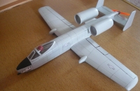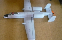 A-10 Thunderbolt jsem postavil původně se dvěma dmychadly DM-67 ale proudový odběr byl takový že houkala výstražná sirenka i s tříčlánkem 3250mah.Letadlo se plazilo jako šnek a doba letu činila asi 3.minuty, tak jsem ho předělal na elektromotor v tlačném uspořádání.Po této úpravě už model létá podle mých představ a ve vzduchu vydrží přes 10 minut velmi svižného letu.Stavba je provedena z xps Austrotherm nabarvena vodouředitelnými barvami Eternal.Marking je podle stroje jenž bojuje v Afganistánu.Letci tomuto stroji neřeknou jinak než Warthog. (prase bradavičnaté)