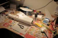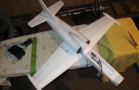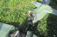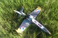 Model jsem postavil z výřezů od firmy LM Models. Použil jsem vnitřnosti z havarovaného F4 Phantom II z výprodeje od Pelikána. To byla asi bohužel chyba. Letadlo létalo dobře, více než dobře, ale jak jsem ho začal dostávat do ruky, létal jsem víc a víc a regulátor to nevydržel :( Vypnul motor, tak jsem v domnění že došla baterka, doplachtil na přistání, bohužel dále od plochy a jak jsem pro model šel, vidím jak stoupá bílý dým... no než jsem doběhl už vyšlehl z trupu plamen.