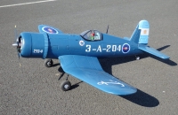 Po zvládnutí mnoha letů s Piperem jsem se odhodlala pro zálet mého dalšího letadla, všeobecně známého a oblíbeného modelu Corsair F4U. Letadlo bylo vybaveno třílistou vrtulí 12x6, se kterou model sotva letěl, vyměnili jsme jí za APC 13x8. I tak s původním motorem model letěl bez rezervy výkonu. Po několika letech jsem s ním na našem letišti v Modelparku Suché havarovala a tak nastala příležitost k přestavbě modelu. Při opravě modelu jsme udělali úplně nové lože motoru z borovicové překližky, vyrobili nové lože pro baterii a nalepili ho na dno trupu. Vyměnili jsme motor za silnější EMP 4240 z bývalého eshopu Leaddershobby. Protože jsem nechtěla klasickou americkou kamufláž, po dlouhém hledání na internetu vyhrála kamufláž argentinská. Model je natřený barvami Eternalu, znaky jsou vytištěné na laserové tiskárně a nalepené Herkulesem, lakovaný matným vodou ředitelným lakem.