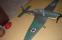 Ju-87 Štuku jsem se rozhodl postavit místo Dewoitine D-520,neboť jsem ho během letošní sezony rozbil, a nechtěl jsem stavět stejné letadlo znovu, a také mě lákalo postavit letadlo s pevným podvozkem, abych zjistil jak bude držet v polystyrenovém jádře křídla.Uchycení podvozku jsem nakonec vyřešil slepením 2ks 5mm překližky do tvaru kvádru vyvrtáním přesných děr pro 2,5mm drát a řádným zalepením purexem do křídla.Zatím drží i při tvrdším přistání,jen kapotáž kol kterou jsem měl vyhotovenou též nečinila dobrotu,proto jsem ji raději sundal(v knize jsem se dočetl, že byla sundávána i u skutečných letadel, zejména na východní frontě taktéž nedělala dobrotu.)Letové vlastnosti jsou výborné křídlo, s lomením do w je sice náročné na stavbu ale odmění vás skvělou stabilitou za letu.Model je vyhotoven z xps austrotherm, natřen barvami eternal kabina vylisována z petlahve,obtisky na laserové tiskárně přilakovány.U kabinky jsem si až později všiml že je vidět bílá strana papíru, na jejím rámování asi jsem ho měl natřít z obou stran,poučení pro příště, ale není to maketa.