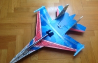 Chtěl jsem si vyzkoušet létání s dmychadlem a tento model byl ideální volba. Cena stavebnice 800 a součástí je i dmychadlo s motorem. Stavba bez problému jediné co, že v plánku je těžiště špatně. Dovažoval jsem špičku a tvrdě jsem na to doplatil. při záletu šel Suchoj hned na čumák. Po odstranění dovážení létá super! Díky velké ploše je řízení jednoduché a model má dobrou stabilitu. oproti stavebnici jsem si udělal řízené i směrovky.