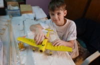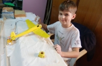 Tento Mini Zlín z-37 Čmelák si postavil môj syn když viděl jak táta staví svojeho Čmeláka , ale poněkud většího. Je mi jasné, že tento model asi nebude ohodnocený max. známkami , ale o to vůbec nejde. I tak pro mě jako štastného otce a modeláře je 10 bodu velice málo, protože ta radost v detských očích, že něco vyrobil sám je nepopsatelná.V mých očích je to překrásný model, na který je i můj syn Matej patřičně hrdý. Postavil ho na koleně a sám. Dokonce i trup má nosníkovou konstrukci ,jen pod papírovým potahem to není vidět. V kokpitu sedí i pilot! Model čeká na dokončení jako je imatrikulačka, žaluzie atd. Je škoda, že v dnešní době je už manuální modelařina v ústranní.