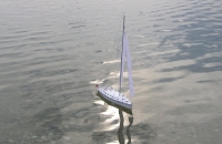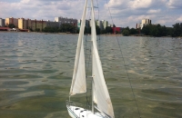 Malá, pekná plachetnica vo svojej prvej verzii. Najväčší problém ju bolo zatesniť a zabezpečiť proti potopeniu. Spočiatku sa mi to moc nepodarilo - skončilo to nedobrovoľným aprílovým potápaním sa s plutvami na Štrkoveckom jazere a následnou úplnou výmenou elektroniky.. Teraz už pláva pekne a spoľahlivo sa drží na hladine, akurát to chce taký správny vietor. Moc ju však nevyužívam, takže v prípade záujmu sa môžeme dohodnúť na odpredaji.