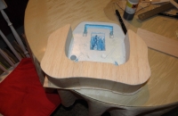 Prvně jsem chtěl jen papírem potáhnout a natřít, ale pak jsem si řekl, že si jej udělám tak nějak hezký. Doleštil jsem tvary, zaoblil rohy a začal potahovat balzou.