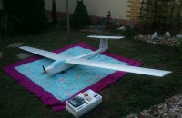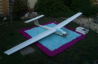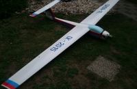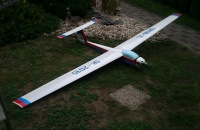 Konečně po třech letech jsem ho dokončil. Jedná se o stavbu podle zvětšeného plánu Modelář konstrukce pana Fary. Je mírně upraven, přidány křidélka ( s tím souvisí zmenšené vzepětí) , výškovka ponechána v T konfiguraci pouze přidáno její ovládání. Zatím neletěl, dnes jsem ho napípal do rádia, tak zálet bude co nevidět, o čemž budu informovat. Tak snad to poletí.