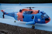 Přemýšlel jsem o pěkné maketě vrtulníku, ale na trhu nic moc. Koukal jsem i po vystřihovánkách a hle, nedávno zde byla inspirace, vrtulník Sokol z papíru na 450-tku. Tak jsem si ho také postavil. Ale to byla jen rozcvička, více se mi líbí tento SeaKing. Prostorově je velmi vhodný, i když při stavbě nějaké problémy byly. Vystřihovánka je upravena a zvětšena 1,6x. Vše tisknu na inkoustovce A4 na hlazený papír 160 g/m2. Něco podlepeno kancelářským papírem a něco kartonem 450 g/m2.