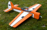 Na RC-manii jsem probíral Magnuma a narazil na jednoho šikovného moraváka, co taky dělá výřezy na Magnuma. Ale i na další modely EPP. Tam mne zaujalo pěkné Ansaldo a Yak-55 a protože si rád zaakrobatím, bylo rozhodnuto. Do tejdne mi Petr PEO poslal výřezy a návod a a fotky. Stavba šla hezky a bez problémů, lepení klasickým vteřiňákem a barvení Balakrylem. Uhlíky jsem dal do trupu, křídla a VOP. Model je spíše na zadní montárž motoru, ale není problém si to udělat na přední, jako já. Děr na chlazení mám dostatek a snažil jsem se, aby mi nic nečouhalo moc ven. Trup je skalpelem zakulacen od ruky, přebroušen a přejet žehličkou. Štětcem č.4 a 8 + lihovým fixem vznikla tato povrchovka, jak Petr PEO poznamenal - HOKI ovské barvy. Zvažuji, že si ho odvezu na chatu a domů pořídím dalšího, se silnějším motorem a menším odběrem, při stejné výbavě ... Petr si na tom vozí i kamerku.