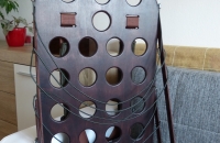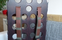 Máme doma pouze jedno auto a žena ho potřebuje více, neb do práce to má přes 10km. Tak jsem si vyrobil tento forichtung na záda na převážení modelů na plac - mám to 7km. Zatím jsem to tesnul na Limitovi, který má R-2650mm + vysílačka + nářadí + baterky + brýle + foťák + minirádio a pití. V pohodě. Funkčnost je snad z fotek patrná. Celá konstrukce je z truhlářské překližky 12mm (možná by stačila 10mm) a čtyř smrkových lišt. Na odlehčení a parádu jsem udělal patřičné otvory. Všechny díry jsem zakulatil, stejně tak venkovní hrany. Pak vše sešrouboval, 2x natřel lihovým mořidlem, přebrousil, 2x nalakoval matným vodou ředitelným lakem, přebrousil, přilepil Epoxy-1200 popruhy na čtyřech místek, přišil horní sponu, zavrtal na boky 10ks oček, udělal propletení z gumového lanka na konci s háčky a bylo hotovo. Modelkufr mám na větší modely a ten má naložený 6,1kg a model mám v ruce. Nosím ho na rameni. Naložená krosna má cca do 7kg, ale na těch zádech to není znát.
