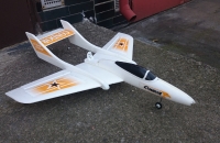 Další můj vyřazený stroj z druhé ruky.Původní nálepky šly hned-zůstal pouze název modelu.Dále nějaké uhlíky na zpevnění,řídící plochy předělány na plast.pantíky,odstranění pro mne zbytečného podvozku s titěrnými kolečky,zakitování děr,vytmelení celého modelu a nakonec jsem jej pořádně obarvičkoval.Motor dal levný z HK,jen ložiska jsem musel ihned vyměnit,ty z výroby řachtaly už při testu bez vrtule.Při záletu jsem měl obavu ze správné polohy těžiště(neměl jsem k dispozici manuál),ale podařilo se.Bezpečně i přistál,dotrimoval,donastavil výchylky a šel si užívat jak kolmého stoupání,tak i ladného letu a velmi příjemného řízení,které zajišťují přesná digitální serva.Pohon mě překvapil celkem nízkým hlukem , kultivovaným chodem a velmi solidní max.rychlostí.Jsem spokojen a už se těším na nějakého dalšího a ještě rychlejšího nástupce.