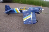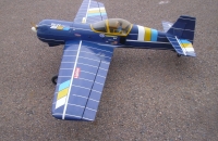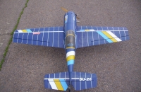 Model pochází z nějaké stavebnice, dostal jsem ho po havárii od kamaráda Ivoše Š..Opravil jsem ho, ale neměl jsem do něj vhodný motor, tak skončil odložený na půdě.Odpočíval tam asi tak 15 let,než jsem do něj zabudoval motor RCGF 26.Trup je laminátový, křídlo a VOP polystyrén - balza potažená folií.