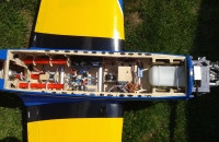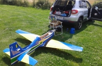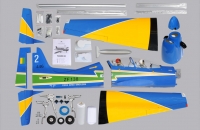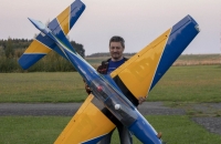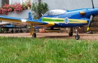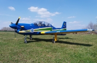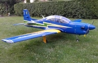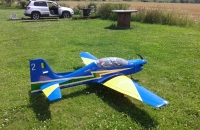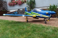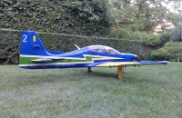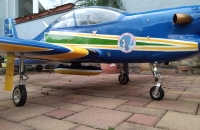 Skoro polomaketa známého letadla Embraer Tucano, skoro v markingu brazilské akrobatické skupiny. Vždy jsem chtěl "velké éro". Zde jsem ale narážel na problém s přepravou. Tento model má dělený i trup, tak tato potíž odpadá. Je to ale zaplaceno vyšší hmotností a navíc jsem asi trefil těžší "kousek", protože i když tam navíc nic nebylo, stejně jsem se nevešel do maximální hmotnosti, kterou udává výrobce (13 kg). Měl jsem 13,7 kg. Vyšší hmotnost ale nevadí. Později po úpravách hmotnost ještě stoupla, ale model létá stále velmi dobře a i minimální rychlost s klapkama je stále příjemně nízká. Model je dodáván i včetně pneumaticky zatahovatelného, odpruženého podvozku. Přesto, že jsem neměl žádný problém s pneumtickým zatahováním jsem zvažoval úpravu. Nejprve vyměnit šoupátkové ovládání za elektronické, ale nakonec jsem ho zcela zaměnil za elektrické LADO666 Black. Dá se nmontovat místo pneumatických válců. Problém byl ale s přední podvozkovou nohou, která se stále ohýbala a praskala v oslabeném místě, kdy byl zajišťovací čep proti otočení odlitku držící kolečko. Ten byl ale skoro tak široký jako kulatina se závitem, kterou procházel. Tu jsem pak nahradil podvozkovou nohou Behotec s kolečkem s hliníkovým ráfkem JET-A1. Hlavní kola jsem vyměnil za ELECTRON 100 mm i s elektrickými brzdami. Nové osvětlení z Night Fly je úžasné, tak děkuji panu Ing. Pavelkoví, který jej "naladil" na míru. Další úpravou byla úprava vzhledu a tak jsem se přiblížil k originálnímu zbarvení letadla. Už jsem vyměněnil i motor za stejný typ, ale zcela nový a dovybavil kouřením. Suchá hmotnost vzrostla na 14,5 kg a přesto lítá skvěle a má s "velkými klapkami" "šnečí" minimální rychlost. Nyní jsem i hlavní podvozkové nohy vyměnil za Behotec. Původní měly odlitek k uchycení kola a ten při této hmotnosti už byl náchylný k ohybu. Nové snesou mnohem větší zatížení. V kopkitu jsem nahradil "maňásky" za pořádného pilota a opravil kryty přístrojových desek, které se teplem zdeformovaly. Těším se na každý let. Měl jsem v plánu ho dovybavit turbopropem KingTech 45 TP. Je i mnoho videí s touto konverzí. Nakonec jsem se ale rozhodl sice pro turboprop, ale ještě silnější a do nového éra pro něj určený. Tak jestli se vše zdaří, rozšířím zde svou letku o Pilatus PC-21.