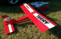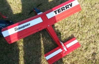 Terryho jsem vlastnil zhruba v roce 1980 s motorem MvvS 1,5D s jednokanálem Mars,po záletu nového elektrifikovaného Terryho vůbec nechápu jak jsem v tý době mohl model uřídit a vlastnit ho asi 3 sezony,potom byl tak promaštěnej že už nebyla možná žádná oprava. Nový Terry je stavěn podle původního plánu zhruba stejnou technologií,pouze křídlo je konstrukční origo byl polyš s dýhou. Oproti originálu je model vybaven křidélky. Model létá skvěle jenom na zádech se mu moc nedaří,ale není to akrobat šlo pouze o to vidět zase Terryho a jeho siluetu po letech zase ve vzduchu.