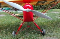 Kryt motoru jsem vyrobil laminátový, jako kopyto posloužil trup samotný potažený igelitem ještě před jeho odříznutím v místě motorové přepážky. Aerodynamické kryty odpružení podvozku také laminát.
