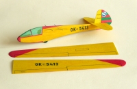 Stínová polomaketa větroně odpovídající kategorii Formule 500. Model je s několika úpravami vyroben podle plánku v Modeláři 3/1994, lze jej házet, nebo vlekat na niti. Zbarvení jsem volil podle stroje létajícího v aeroklubu v Popradě. Pro nedostatek místa v bytě je model rozebírací. Zatím čeká na zálet, budu ještě zvětšovat úhel náběhu křídla.