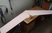Tak jako křídlo 1400 je i tohle křídlo 1800 od myšlenky po vyrobení vlastní dílo. Použít polystyren červený,je tvrdší než fasádnický.Váha je i s aku. Mám připraven i výkonnější motor.To ukáže zálet.Po záletu přidám video.