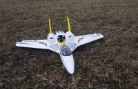 Oficiálně se to jmenuje Zeta Ultra-Z Blaze, objednáno z Číny jako levný EDF model, jehož případná ztráta chybou pilota by nebyla zvlášť bolestivá. Je to zjevně klon asi známějšího Radjetu Ultra z Hobbykingu. Při stavbě lze zvolit variantu s tlačnou vrtulí nebo v extrémním případě až třemi EDF jednotkami najednou.
