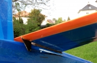 Pro uživatele lik přidávám detail výškovky. Je to tak že výška trupu v místě výškovky je cca 3.5 cm. Na začátku výškovky se z toho ubere 4mm, takže výškovka je v rovině s horní plochou. V místě pohyblivé klapky se pak trup začne svažovat dolu, což vytvoří prostor pro potlačení klapky. Resp. takový byl plán, nakonec jsem bohužel ty 4mm přešvihnul a musel tam přidat pásek depronu abych to napravil :)