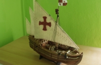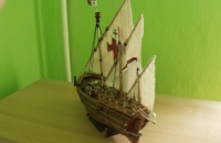 Přestali mě bavit letadla .Tak zkouším lodě .Caravella Nina lod z roku 1492 . Jedna z lodí Krištofa Kolumba Kterou si dost oblíbil .Model je postaven podle informací a fotografií z internetu . Plán byl načmárán ručně taky podle internetu. Vše kromě děl stavěno z materiálu co dům dal. Není to přesná maketa.